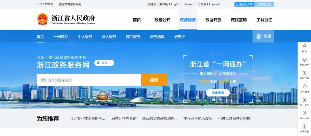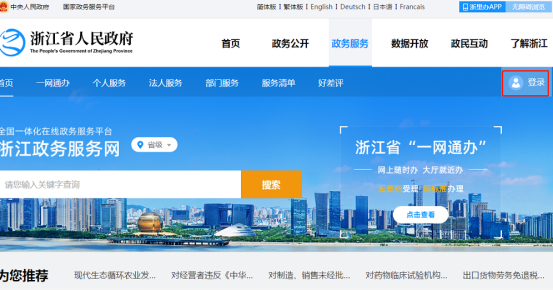 1. 進入政務(wù)服務(wù)網(wǎng)“http://zwfw.zj.gov.cn/”