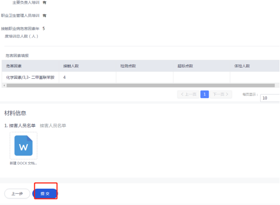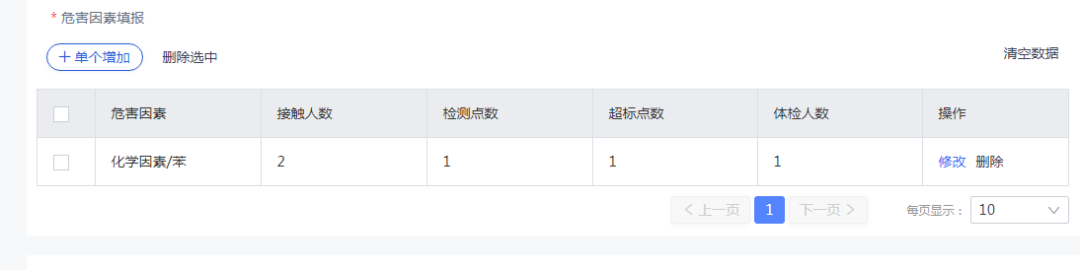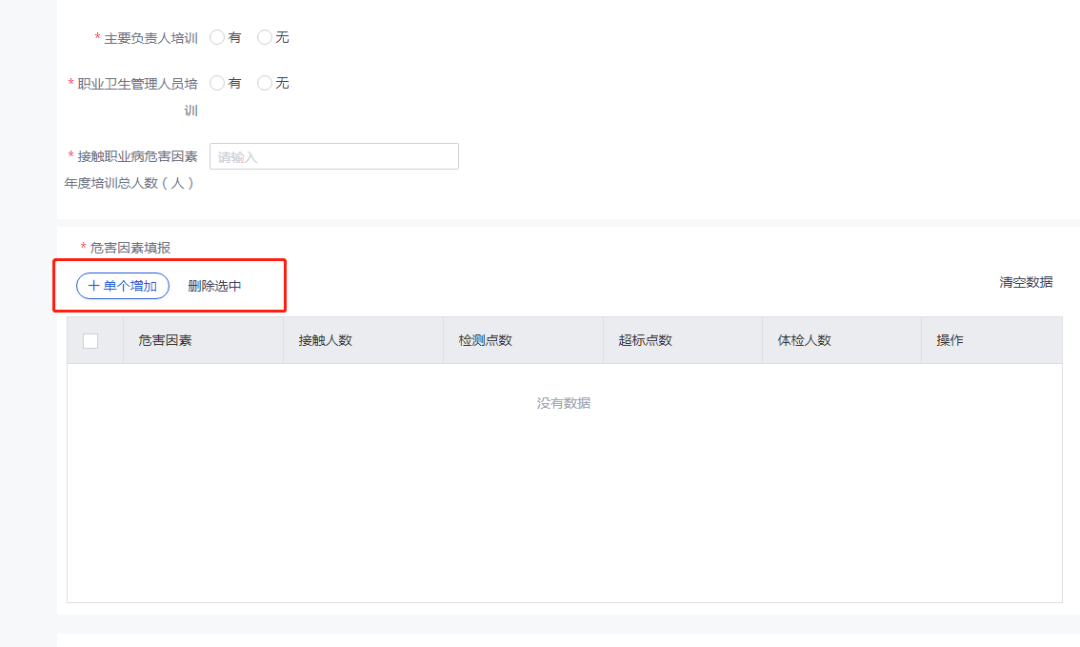 填完基本信息后即可錄入危害因素填報,點擊添加接觸的危害因素