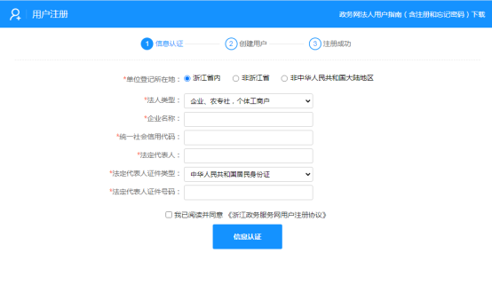 注冊——根據(jù)企業(yè)實際情況,填寫認證信息,選擇正確的單位登記所在地,正確填寫相關(guān)信息,包括法人類型、企業(yè)名稱、統(tǒng)一社會信用代碼以及法人證件號碼等(正確填寫法人信息——法人姓名和聯(lián)系電話);