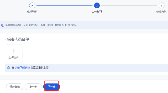 10. 上傳材料后,點擊“下一步”