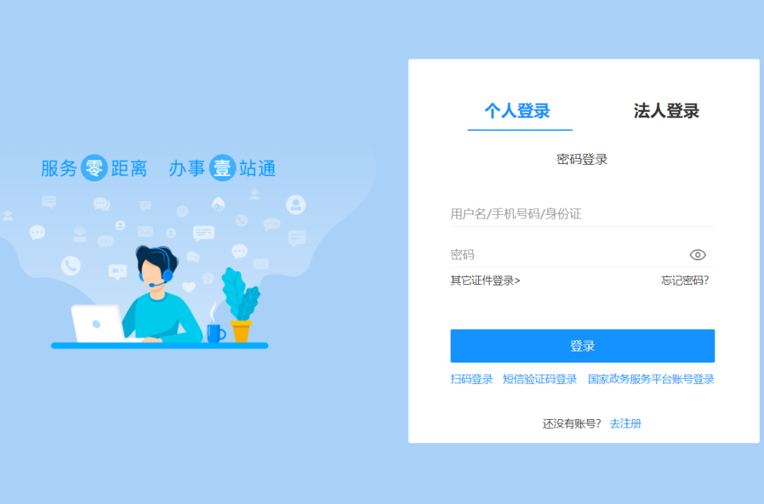 3. 若有賬號,可直接輸入賬號登錄進行申報;若沒有賬號,點擊注冊,注冊成功后開始申報;