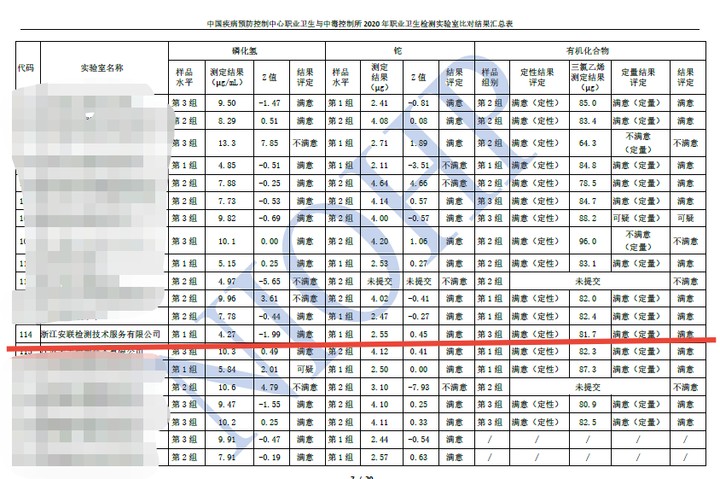 安聯(lián)檢測在2020年職業(yè)衛(wèi)生檢測實(shí)驗(yàn)室的比對情況如下: