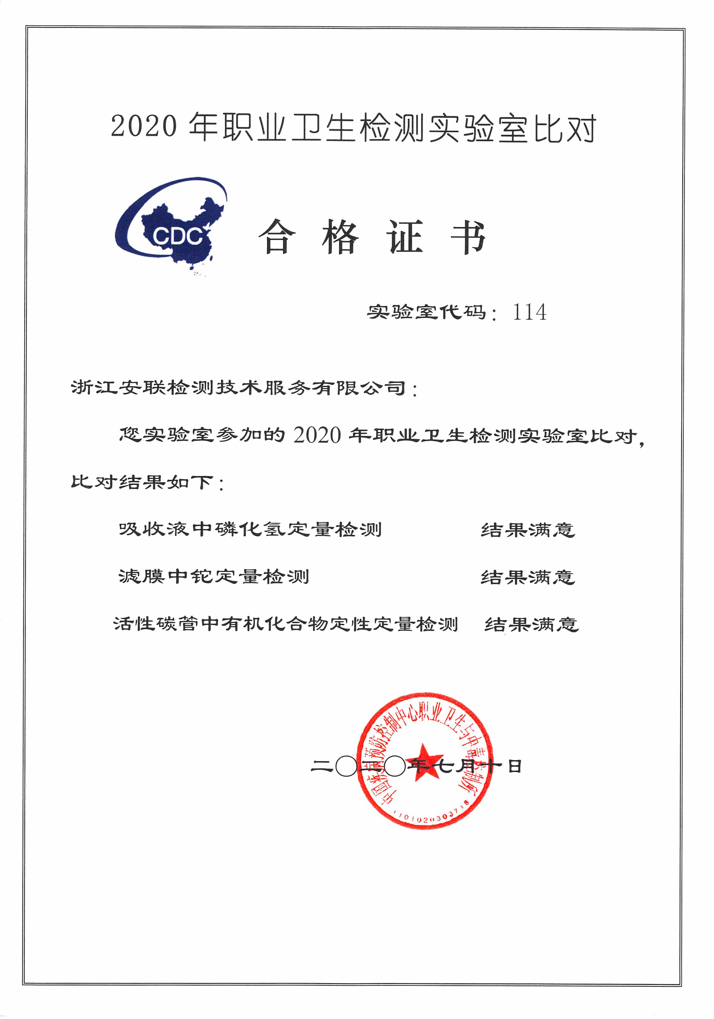 我司通過2020年度中國疾控職業(yè)衛(wèi)生項(xiàng)目實(shí)驗(yàn)室間比對